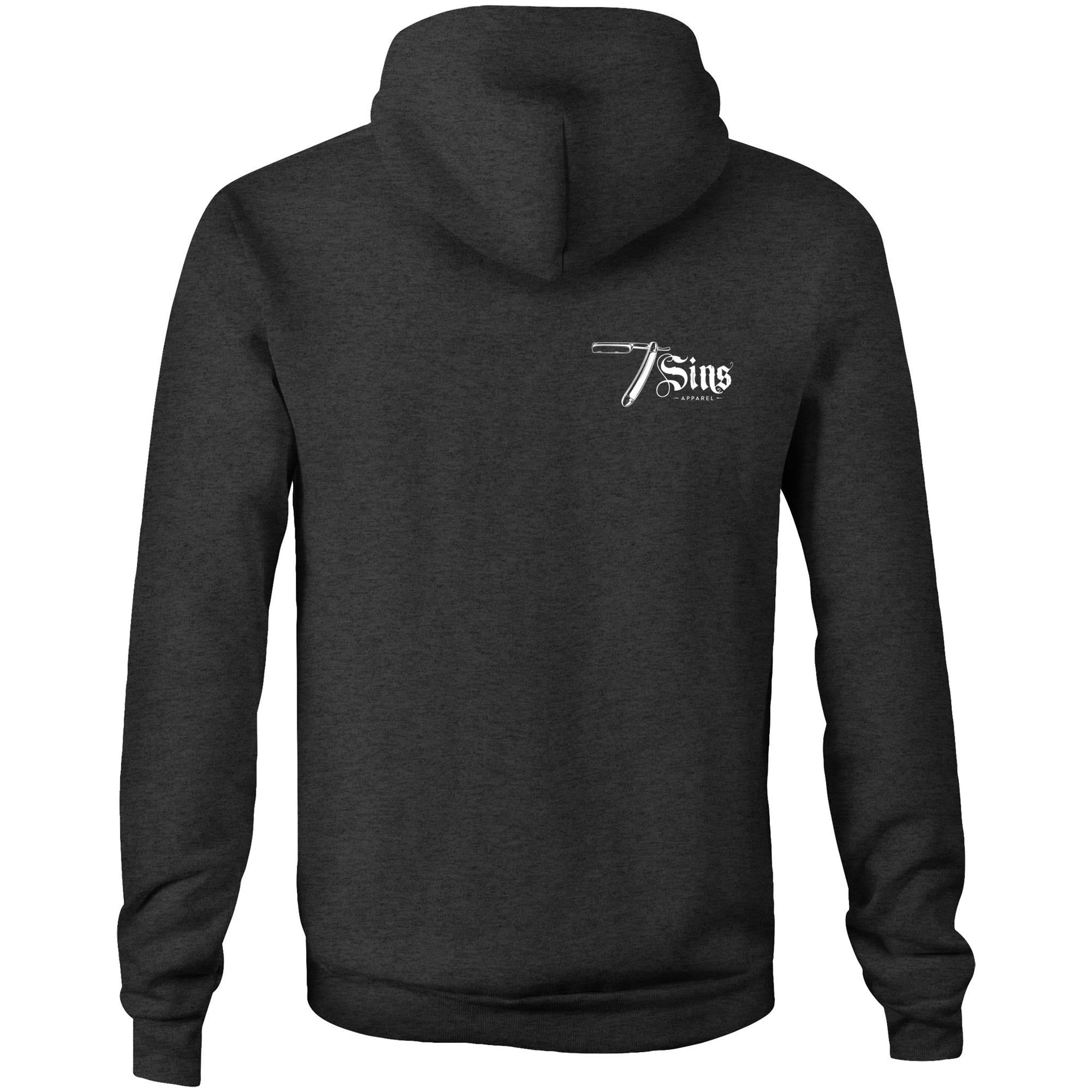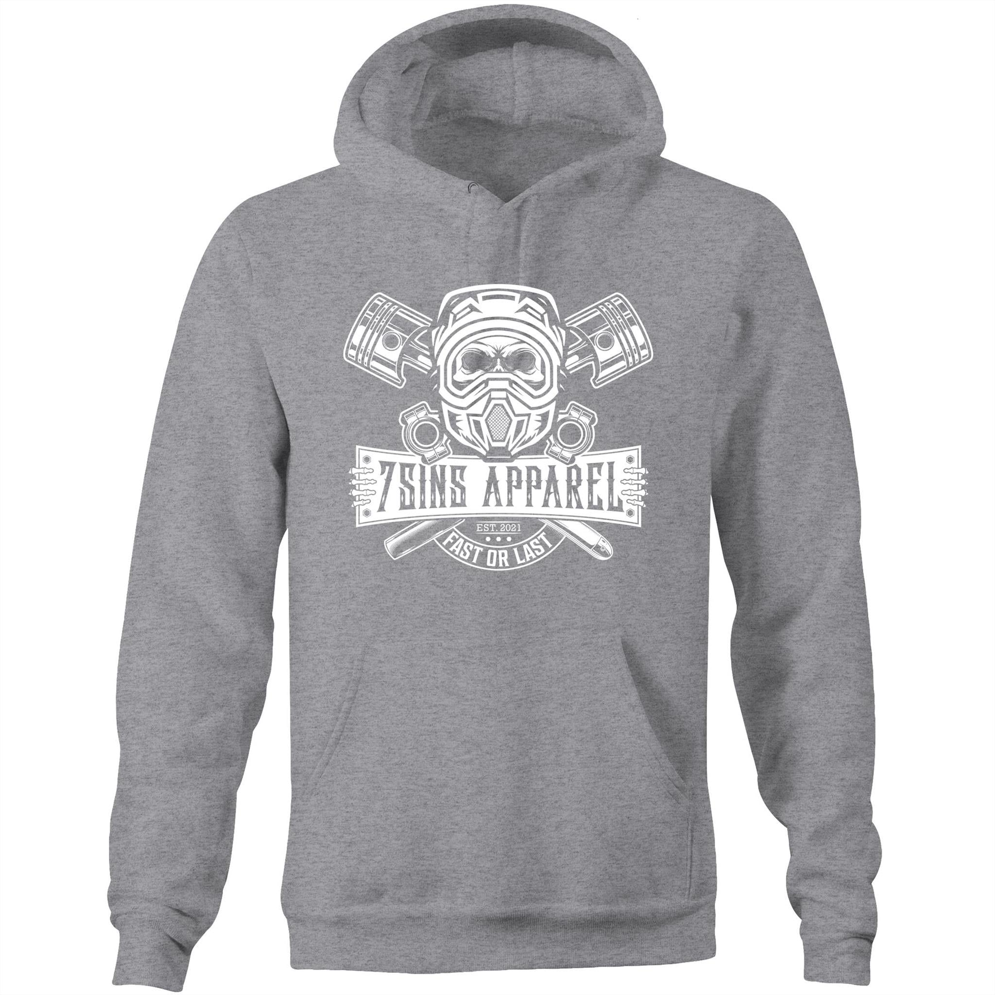 Unisex pocket hoodie. Regular fit, pullover hood, inset sleeves, kangaroo pocket. Heavy weight, 350 GSM, 80% cotton 20% polyester anti-pill fleece. Lined hood, tonal shoestring drawcord, sleeve cuff ribbing, preshrunk to minimise shrinkage.